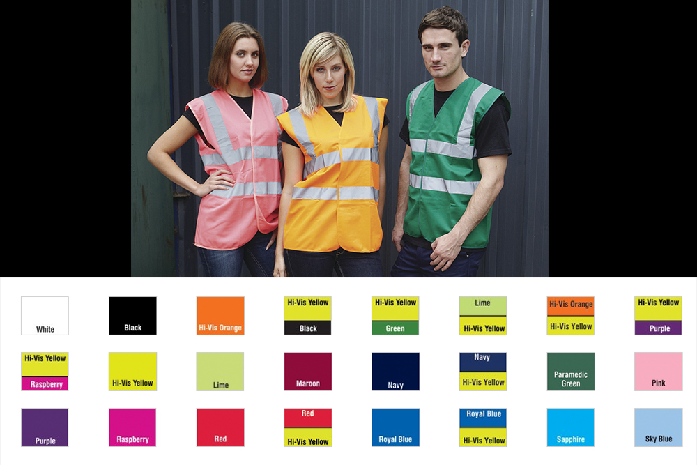 - Hi-Vis Yellow, Orange, Yellow/Orange conform to EN ISO20471:2013 Class 2